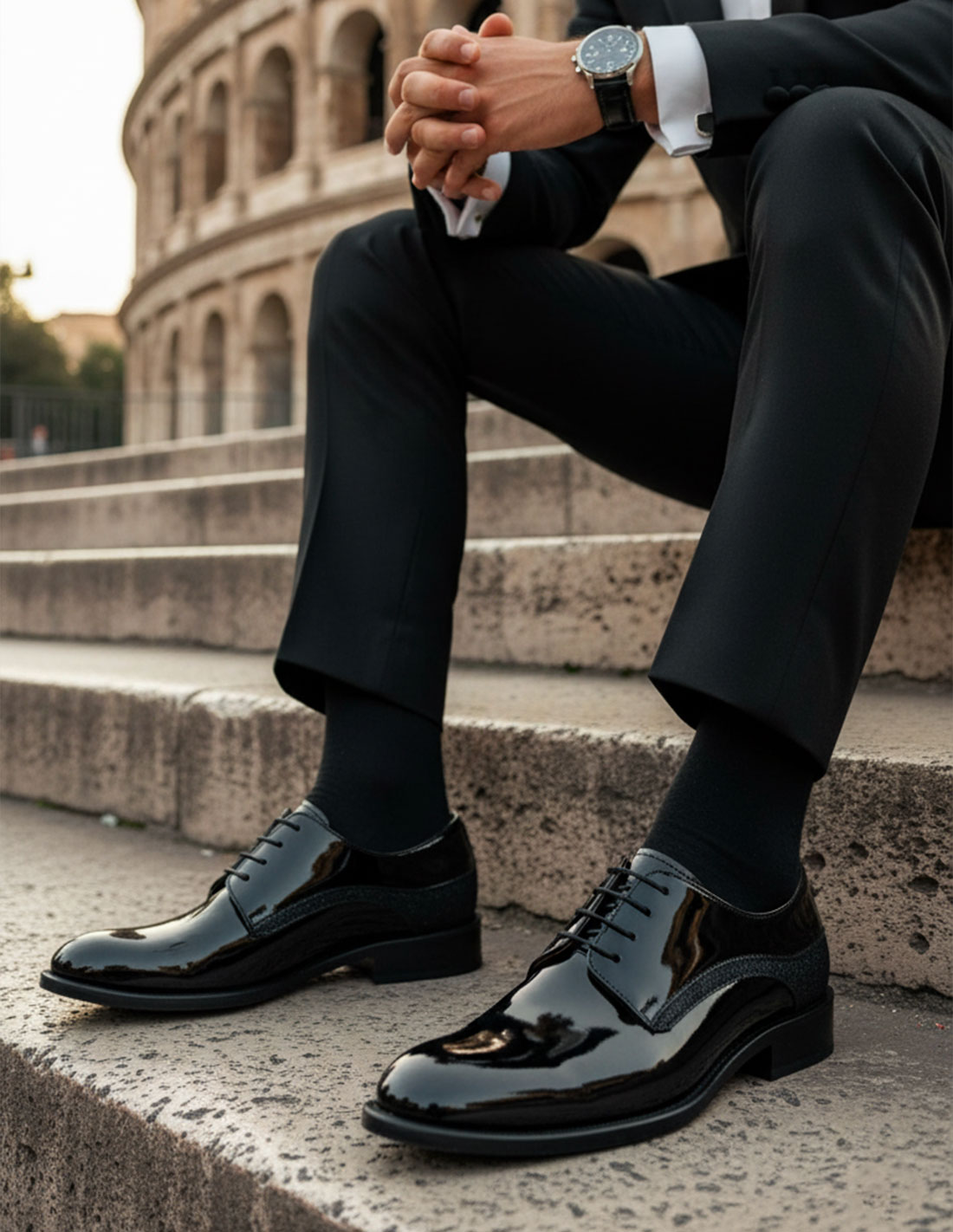 Scarpe stringate uomo verniciate made in Italy con dettagli brillantinati